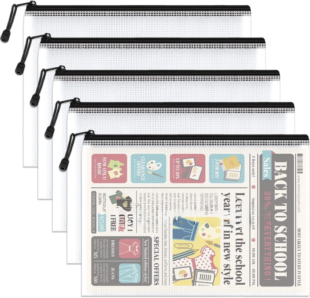 Mesh Zipper Pouch Bags, Letter Size